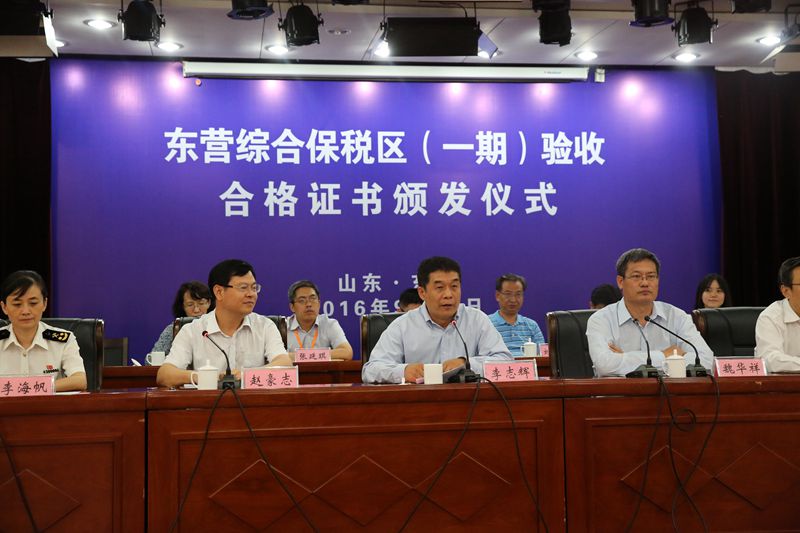9月26日上午,東營綜合保稅區(qū)(一期)正式通過由中國海關(guān)總署牽頭、國家十部委組成的國務(wù)院聯(lián)合驗收組的驗收,并獲頒驗收合格證書。